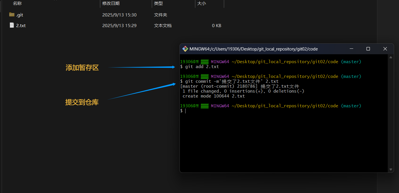 代码要先git add到暂存区 在git commit 才能上传到本地仓库